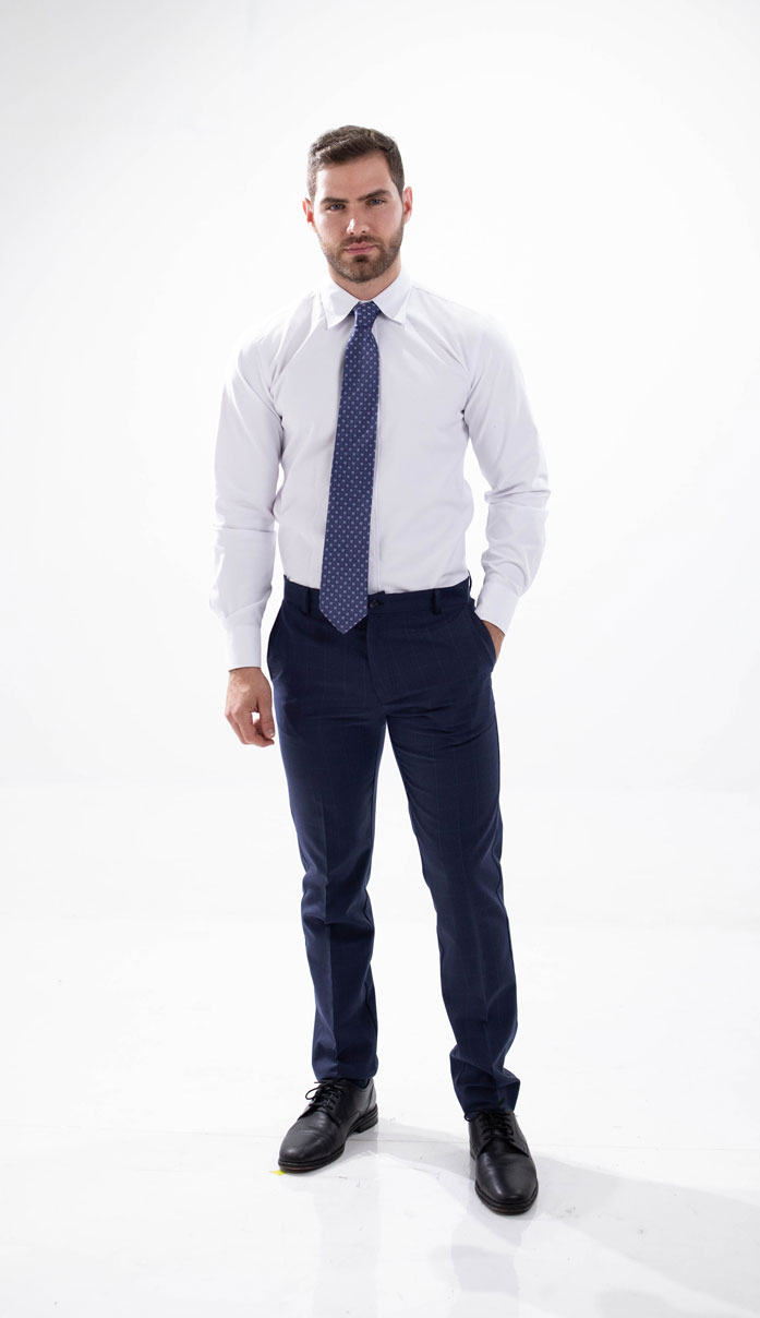 Camisa formal confeccionada en 100% algodón. Presenta cuello frances para corbata, cierre con botones personalizados y manga larga de puño con botones.