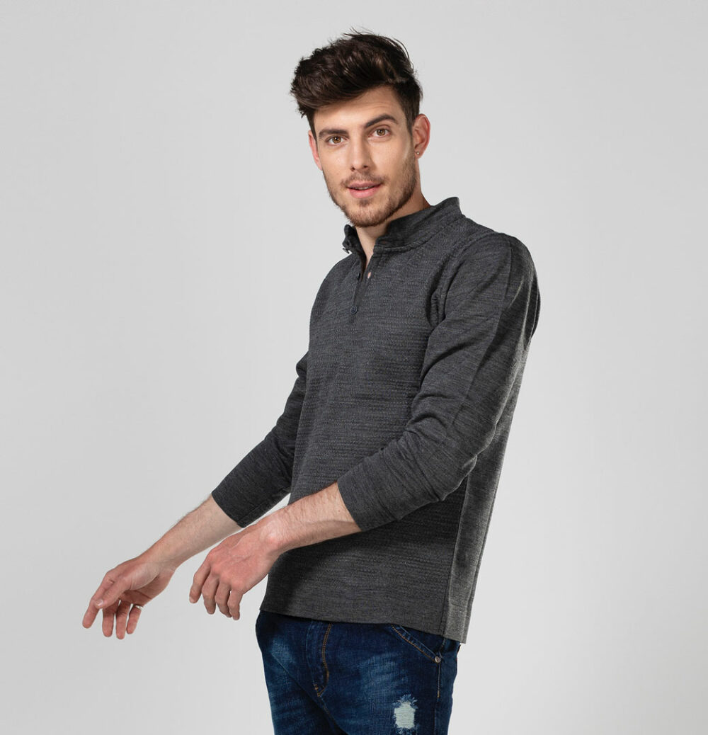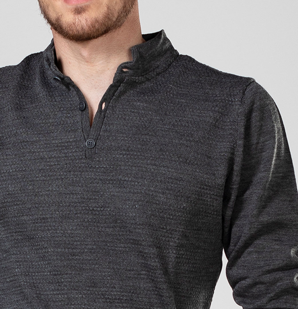 Tejido de punto confeccionado en algodón con cuello neru y cierre de tres botones.