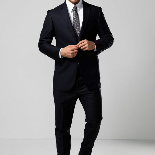 Traje confeccionado en casimir. Cuello de solapas. Manga larga acabado en puño con detalle de botones. Bolsillos de vivo de pecho y solapa.